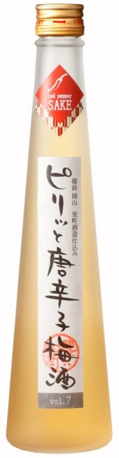 This is a connoisseur's drink made by blending our pride and joy, plum wine, made by steeping locally grown Akaiwa green plums (Kojo plums) in sake made from Omachi rice for over a year, with "hime togarashi" peppers from Okutsu, Kagamino-cho, Okayama Prefecture. The plum wine's mellow sweetness, subtle acidity and tangy flavor are truly appetizing.